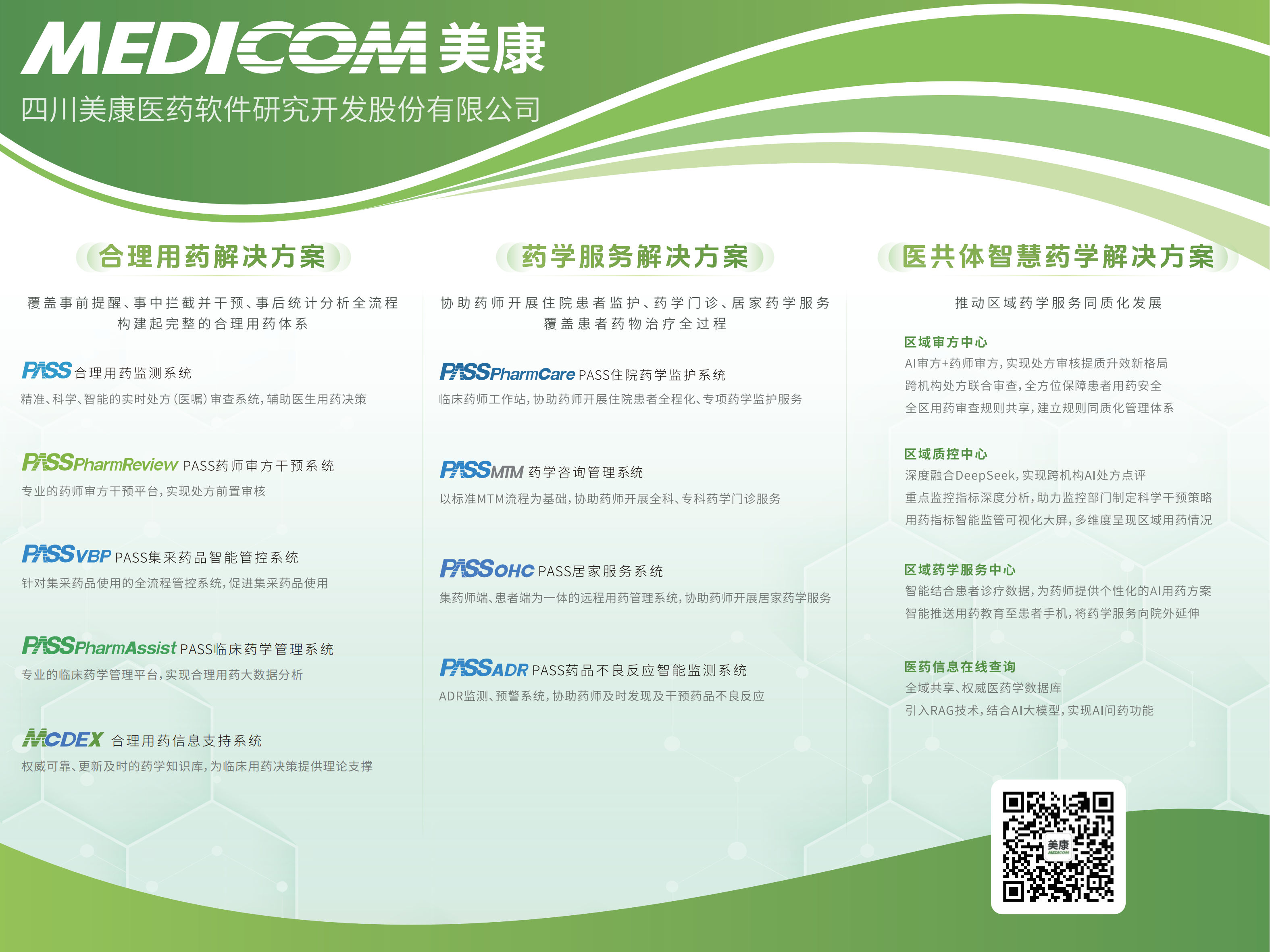 初心如磐,创新不止!四川美康专注临床合理用药领域二十余载,以云计算、大数据、ai 等新兴技术为引擎,深度融合行业前沿科技,持续构建专业的产品体系,为各级医疗机构提供多样化的产品及服务。未来,美康将坚持以品质为基石、以服务为纽带、以创新为动能,助力医院合理用药工作向信息化、智慧化转型,推动医疗行业人工智能 应用创新发展