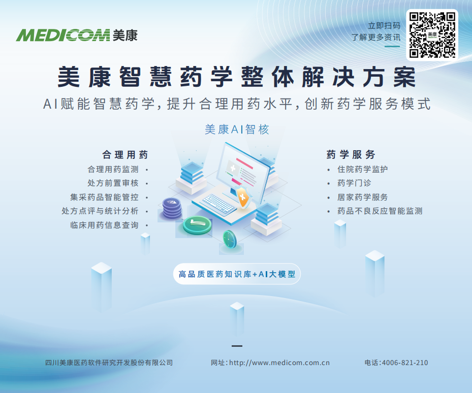 创新驱动发展,智慧赋能药学!美康紧跟医疗行业前沿,依托ai、大数据、云计算等技术优势,不断优化合理用药产品体系,助力医疗机构提升药学服务水平。未来美康将持续进行产品创新,助力医院临床药学工作不断向信息化、智慧化转型,推动我国临床药学服务高质量发展!