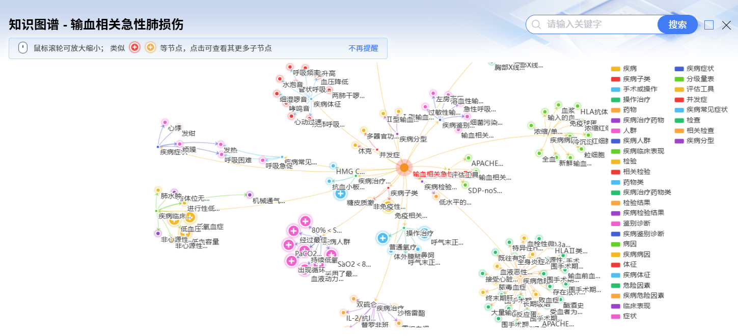 “疾病诊疗”知识图谱构建了包含10万 实体、20万 实体关系对的结构化知识网络,实现疾病、症状、检验、药物等多维度信息的智能关联。